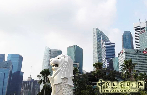 在林立高樓的包圍之中,魚尾獅遠眺金沙酒店而立。現代化的城市景觀書寫著新加坡作為“亞洲四小龍”之一的輝煌。