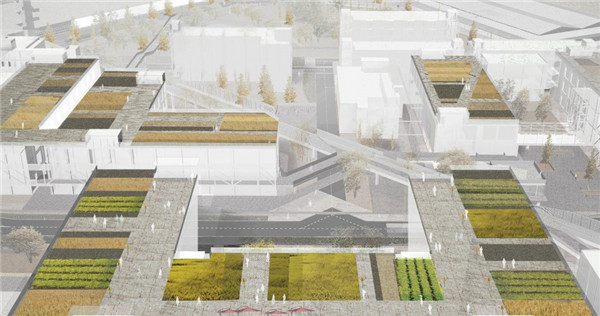 步行可達性和體驗的提升也是該方案的重要目標之一。方案提出的“步行圈”穿越單體建筑的商業首層,即使在商場關門后仍是一個連續的步道系統。為支持大部分使用者將在園區同時工作和居住的特殊模式,它將一系列日常生活商鋪(咖啡廳,健身房,便利店等)聯系起來,形成了一個1.0公里的生活方式圈,是貫通整個園區的重要空間線索。同時,因其聯通原本被建筑體量打斷的各個小廣場而提供了更加連貫通暢的步行體驗。