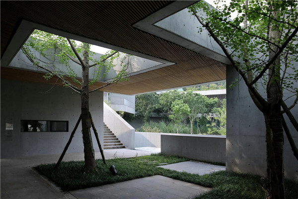 三棟主樓都有天井,自然光可以透過天窗照亮更深的地方。開口、窗戶、懸挑和走廊模糊了室內外的分界線,將整個建筑空間與藍天、青山、綠樹、陽光和清風融為一體,在人造建筑與自然風光之間建立了和諧共存的友好關系。