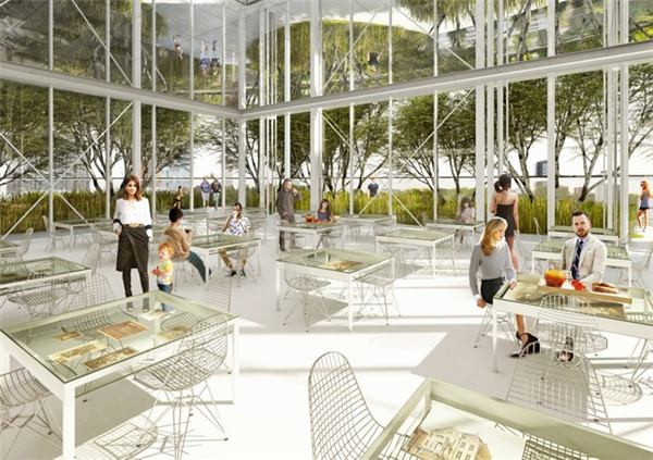 博物館內部有若干不同高度的展示區,之間由蜿蜒的樓梯相連,樓梯匯聚在中心中庭之中,整個中庭的墻壁布滿了藝術品,讓人感到被藝術包裹的感覺。樓梯最終抵達屋頂的花園,可在此停留、休息、觀景。這個價值連城的“巨碗”博物館將在2018年呈現。