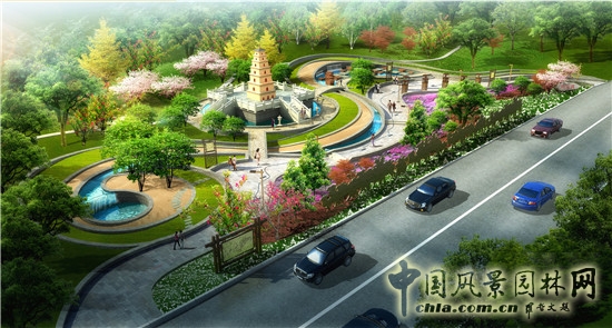 2.植物配植:園區內部的植物配植采用自然式種植的方式,主植西安市市花石榴花和西安市市樹國槐。園內配植武漢市市花梅花以及銀杏、櫻花等,兩地市花相呼應以示兩地城市的友好交流。