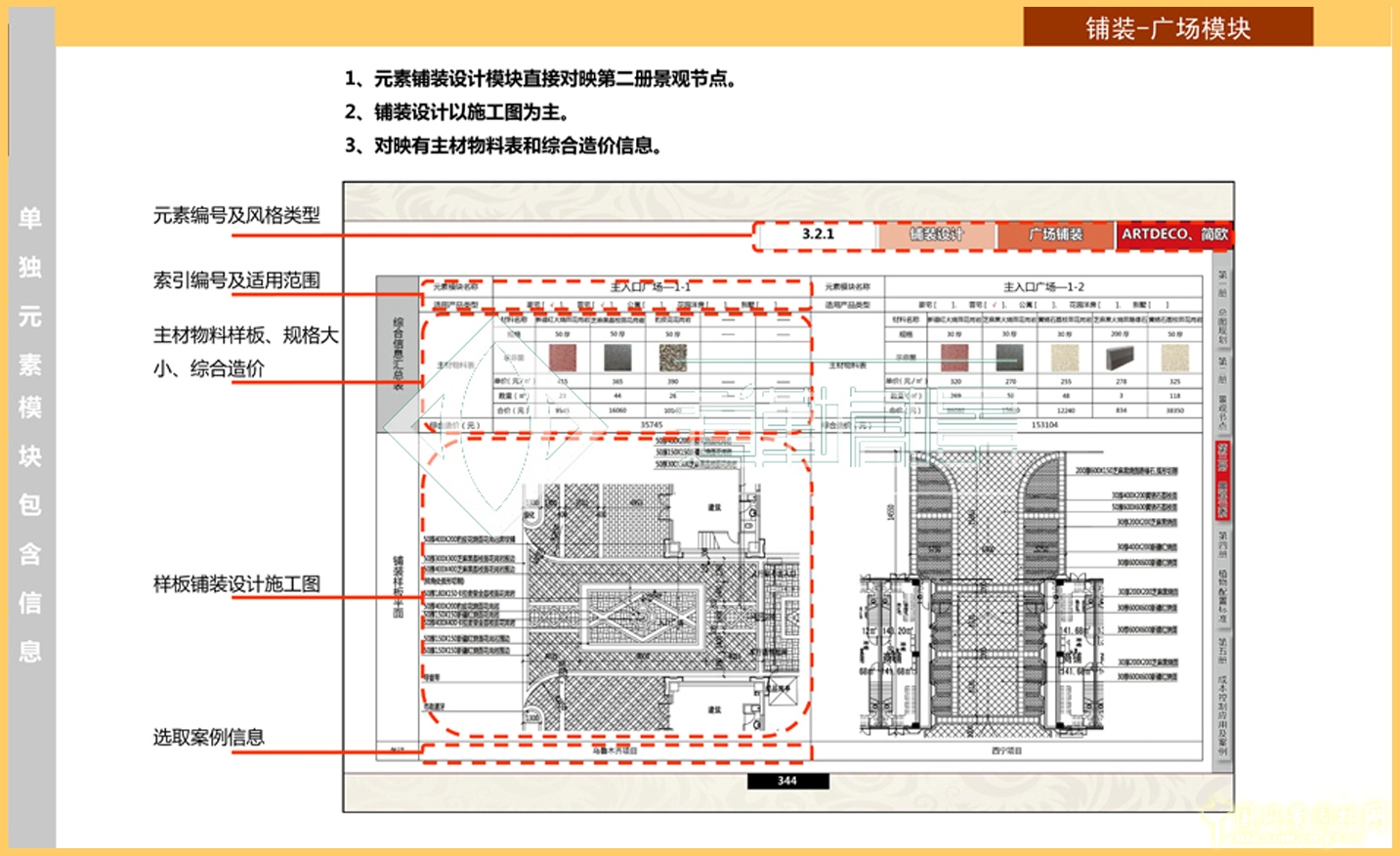 內(nèi)容分為構(gòu)筑物、鋪裝設(shè)計、設(shè)施小品3大類元素模塊;