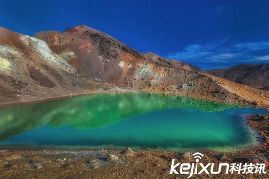 新西蘭湯加里羅國家公園的死火山口,是火山爆發頻繁的地帶,在荒涼的山頂上有一汪碧綠的湖泊,神秘又驚艷,就像是山頂上鑲了一塊祖母綠寶石。盡管好奇號火星探測車沒有在火星找到湖泊。但我們可以想象,在由火山巖形成的粗糙又荒涼無比的山頂上,湖水閃耀著祖母綠寶石光芒,就存在于某個外星球上。