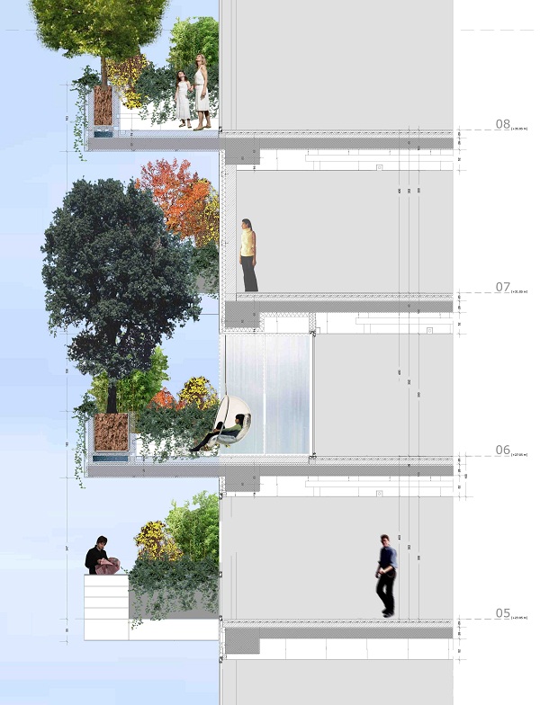 據(jù)監(jiān)督該工程實(shí)施的意大利城市設(shè)計(jì)和建筑公司"波里工作室"董事米切爾·布倫尼羅稱,兩幢公寓大樓的陽(yáng)臺(tái)上總共種植了730棵喬木、5000株灌木和1.1萬(wàn)株草本植物,相當(dāng)于1公頃森林所擁有的綠化量。設(shè)計(jì)得錯(cuò)落有致的陽(yáng)臺(tái)更有利于植物生存,每個(gè)陽(yáng)臺(tái)空間就有兩層樓高。一組專職園藝師將負(fù)責(zé)管理這些樹(shù)木,樓頂最高的樹(shù)木將來(lái)可能會(huì)長(zhǎng)到9米多高。