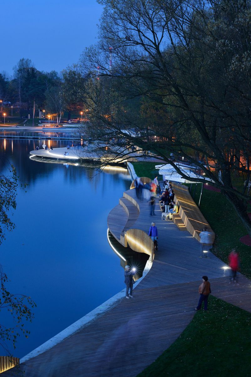 整個項目開發的湖岸有400米長,整個區域約2公頃。之前該地區只是一片草地,只有漁民能盡情地享受這里的景觀。在開放的第一個星期,盡管天氣不盡如人意,湖岸走廊還是大受歡迎,成為全天候的人們聚會的新地點。