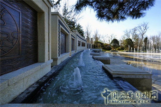 通過對項目規劃方案分析并結合示范區造景需要,注重空間的節奏變化和客戶的游線感受,對示范區劃分為五大景觀區段:一庭:入口空間、林蔭水景大道、中心水景;一園:緩坡草地、花溪谷;一胡同:外圍道路。