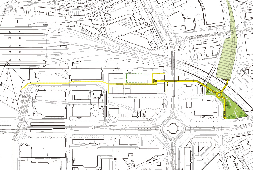 鹿特丹市中心建立起400米長的人行天橋用以連續三個核心區域—Pompenburg公園、Hofplein火車站屋頂花園、以及重要的城市商業公共空間與建筑,最終實現一個三維城市景觀。