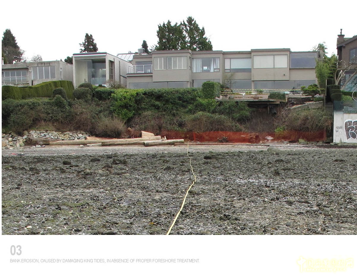 浪潮導(dǎo)致海岸被侵蝕破壞,并且缺乏適當(dāng)?shù)木S護(hù)。