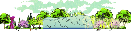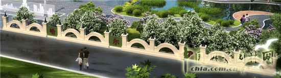 入口圍墻采用太陽島公園內新藝術運動風格的橋體樣式與五色草花壇結合,形成具有哈爾濱特色的景觀圍墻。
