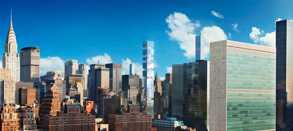 ODA事務所在曼哈頓設計的一棟住宅大樓以樓層之間的露天平臺為特點,旨在完成“夢想鄉村小院”的設計。