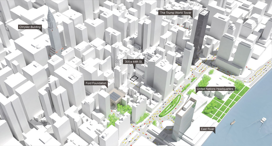 大樓總建筑面積116,700平方英尺(合10,800平方米),每層2,700平方英尺(合250平方米),一共包括44個一至三臥的住宅單元。另外還有一套雙層頂層公寓套房擁有自己的整層平臺。