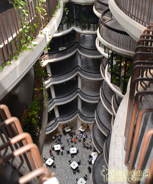 360度的中央空間將所有分離的塔樓連接為一個整體,56個自習教室自然分布于其中。