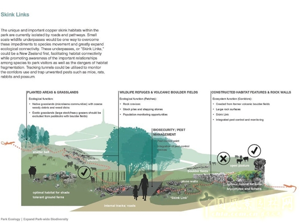 總體規劃將瀕危蜥蜴在公園中的棲息地連接起來,并樹立了醒目的生態威脅標示。