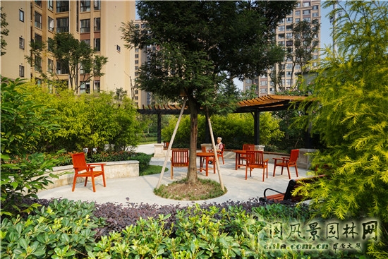 通過建筑與景觀的交相呼應,營造出優雅高尚,品質卓越,崇尚體驗,舒適安然的生活社區。道路體系分級設置,主要軸線以外,次級人行園路隨著建筑布局的錯落,曲線隨機布局,沿線設置開敞綠地,或設計成以賞花為主,或布置涼亭或花架作為社交聚會的場所。人行園路進入組團入口設置景觀節點,強調組團花園與公共交通的分界點,配合周邊層次豐富的植物群落或緊湊或瀟灑地界定了空間,綠化層次豐富,并且開敞空間與私密空間相結合。