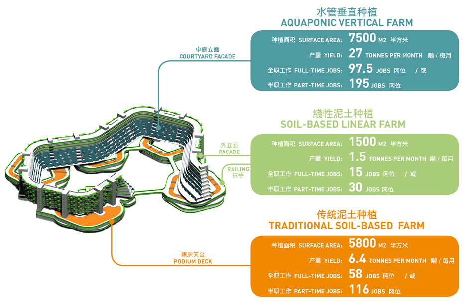 這個農場仿效首創的ComCrop屋頂農業,設置了垂直復合養殖農業和屋頂土壤種植系統。ComCrop屋頂農業是一個設在烏節路購物中心屋頂的復合養殖農場。
