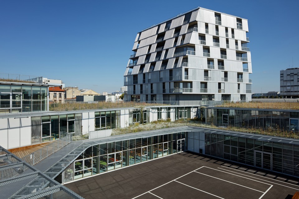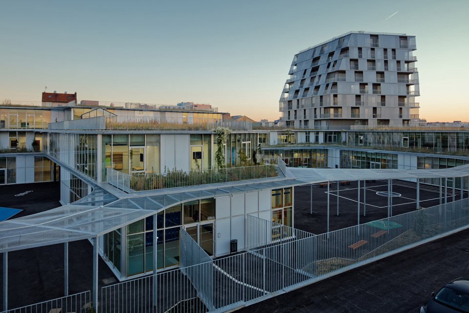 建筑師將綜合教學樓設計成三個“半島”,從而形成了兩個南向的操場,保證最頻繁使用的區域——教室、走廊、操場——能夠接受最大限度的光照。校園被設計成錯落的梯田式的景觀。朝南的操場充分利用陽光和上方的景觀。