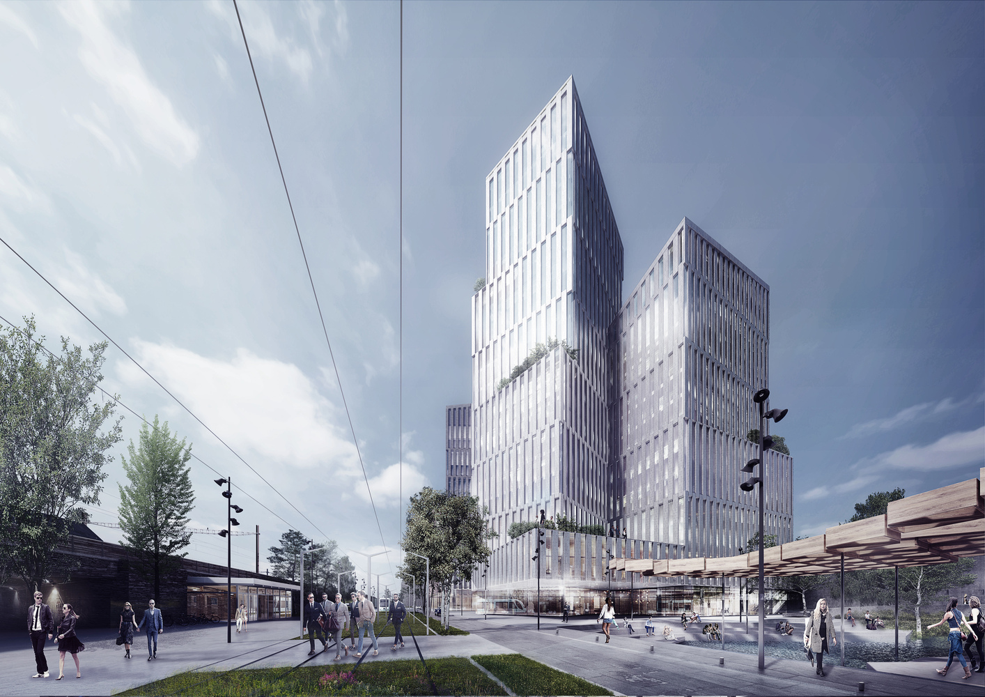 “通過創建一個強大并且多樣化的層次結構組成的街道,小巷,廣場和廣場,我們可以看到未來的城市的中心,將成為Skoyen這座密集城市發展的催化劑。在這個新的中心日常用戶或者過路人不僅會感到安全,也會被周圍的環境所吸引。通過使用已經存在的空間,這里的中央將會鏈接到奧斯陸市中心,現存的公共交通樞紐和霍夫河就仿佛是“自然的司機”,為我們創建了一種非常便利開闊的體驗,并和周邊環境有著良性的交互。”