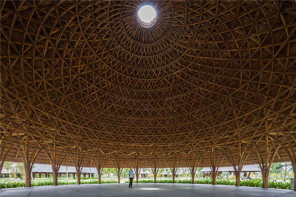 建筑師在穹頂的頂部設計了一個圓形天窗引入自然光,使穹頂內部在白天不需要人工照明。同時,天窗還可以排出熱空氣,保持穹頂下的空間陰涼。對公眾開放的竹棚屋已經產生了多樣的使用方式,這提供了一個可持續性的建筑實例:傳統建筑形式結合現代設計理念,使建筑適應現代生活。