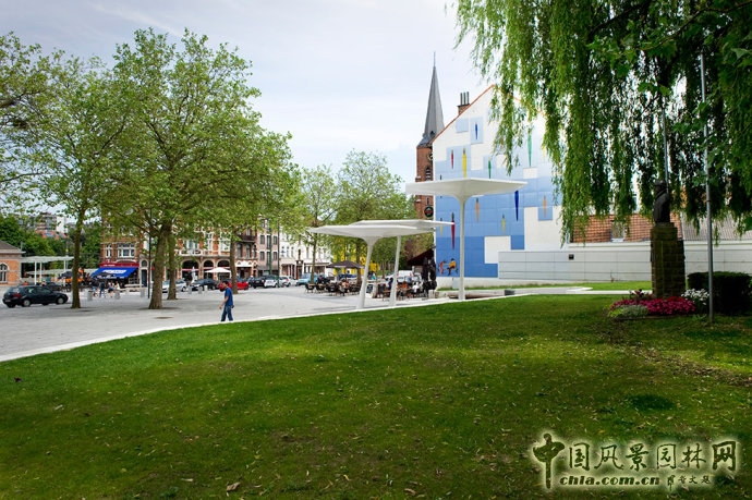kardinaal名士廣場由OMGEVING城市景觀規劃事務所設計,位于比利時布魯塞爾最環保的19個社區之一的中心。曾經的城市大門聚集著各種活動場所,包括警察局、火車站、電車和公共汽車站、教堂、圖書館和學校。該廣場是公民活動空間的中心,這給設計團隊帶來了重大的挑戰。因為設計團隊必須要合理安排所有的活動空間,同時還要在同一時間內把控機動車和行人的交通流量,以確保廣場更容易被市民訪問。