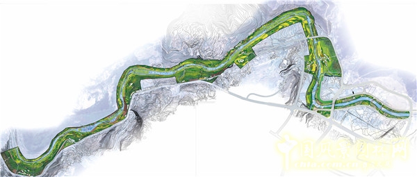 古藺河道景觀設計項目運用一種敘述的方式,強調人類與河流間日益增加的互動聯系。與古老的中國畫《清明上河圖》類似,沿古藺河道的旅行也將向人們展示出一幅自然景觀向城市景觀的過度歷程。規(guī)劃設計將保留并保護河道上游部分的現狀景觀特征,極少的人類干預便于游客探索并體驗大自然。沿河道漫步,游客將進入開發(fā)程度更大的區(qū)域,并陸續(xù)體驗山地景觀,農業(yè)景觀、村莊景觀、公園景觀以及新開發(fā)的城市景觀。