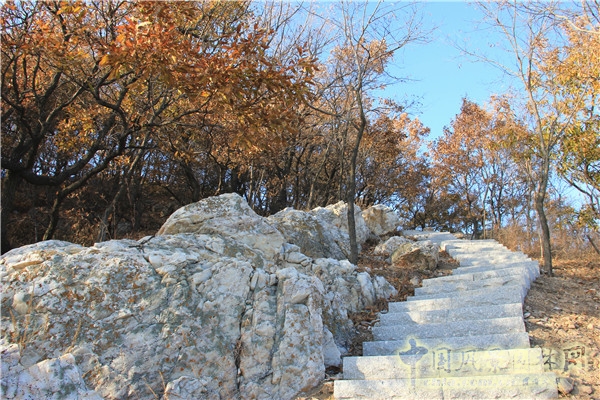 仙蹤石徑:該區域地勢陡峭,多山石。石頭形態各異,設計時在不破壞山石原有形態的情況下鋪設石階。在視線開闊處設置木質觀景平臺及觀景亭。悠循石徑仙蹤,雅風漫卷著松濤,登高遠望藍天碧海的萊山。