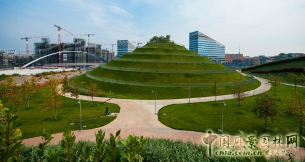 最有趣的方面還是屬于其中的三座"綠色雕塑"。這樣的設計解決了一個重要的問題:如何處理建設過程中的所有的材料?顯然,土壤已經(jīng)被回收,材料也已經(jīng)被處理、選擇和篩選,重新出現(xiàn)在新的公園中。