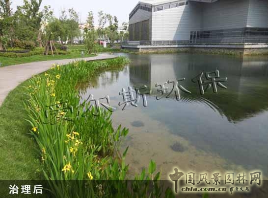 項目水域面積為2000㎡,水深1.2m,自然駁岸,補充水源為雨水。采用愛爾斯水域生態構建技術系統,三個月后,水體清澈見底,透明度達到1.2m以上,水質達到國家地表水三類標準。