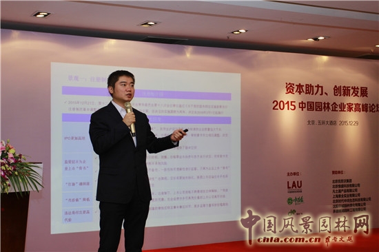 深圳文科園林股份有限公司高級副總裁孫潛先生帶來了“園林與資本”的演講。深圳文科園林作為在主板上市的企業(yè),發(fā)展非常迅猛,孫潛先生也是全程參與了企業(yè)上市的過程,作為地道的園林人,他更多的從行業(yè)角度發(fā)表了對園林資本的看法。“上市對企業(yè)的意義是什么?融資的資金到底如何來用?”這是許多園林行業(yè)面對上市都會(huì)遇到的問題,孫總也強(qiáng)調(diào),會(huì)賺錢的企業(yè)并不是最值錢的企業(yè),上市是可以解決一些問題,但是企業(yè)更要注重的是上市之后的發(fā)展,只有這樣才能真正發(fā)揮資本的作用。