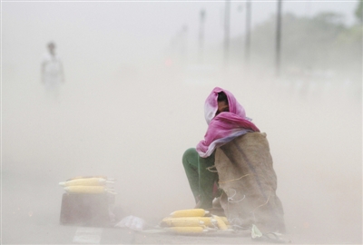 2015年5月20日,印度新德里,當地遭遇嚴重沙塵暴天氣,空氣污染嚴重。