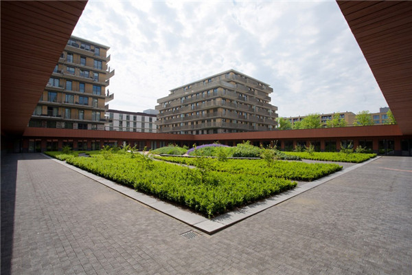 由Architectuurcentrale Thijs Asselbergs設計的新Zonnehuis護理中心位于場地的東側。護理中心的廣場上有一座種植著多年生植物的花園,花園中有一個溫室,住在這里的老人可以在此從事喜愛的園藝。廣場上還有以一塊露天平臺和游樂場地,以及一條用于鍛煉走路的坡道和臺階。這兩處景觀在設計時都非常注意對罹患癡呆癥老人的照顧。