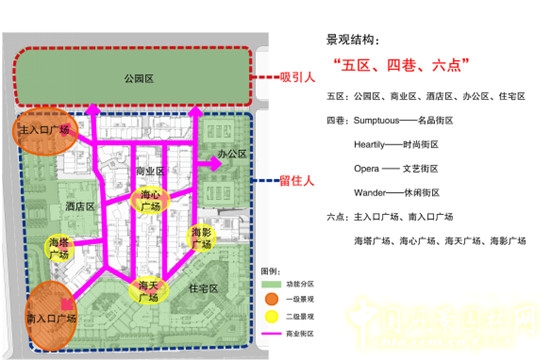 五區:公園區、商業區、酒店區、辦公區、住宅區