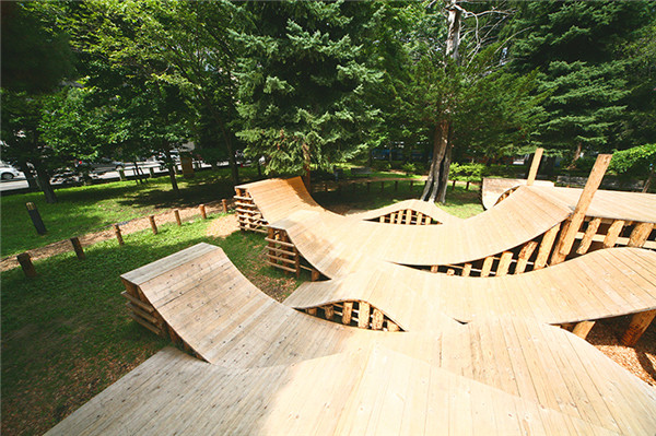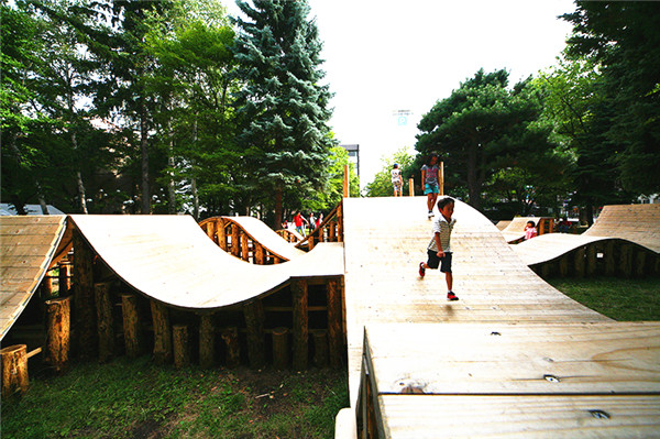 這座位于日本北海道波浪起伏的木結構被構想為是一處模擬森林。為了設計該臨時工程,給孩子們打造沉浸式的玩樂空間,建筑師五十嵐淳(Jun Igarashi)與YCAM interlab、山口媒體藝術中心的研究人員和開發人員小組通力合作。