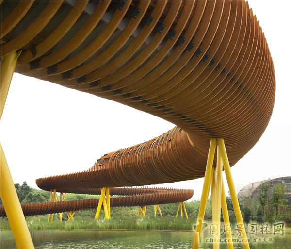 中國風(fēng)景園林網(wǎng)訊 2015“園冶杯”國際競賽(專業(yè)獎)國外項目申報仍在進(jìn)行中,本期為您介紹的是由新加坡LOOK Architects申報的成都市麓湖人行天橋——蛇骨橋項目。
