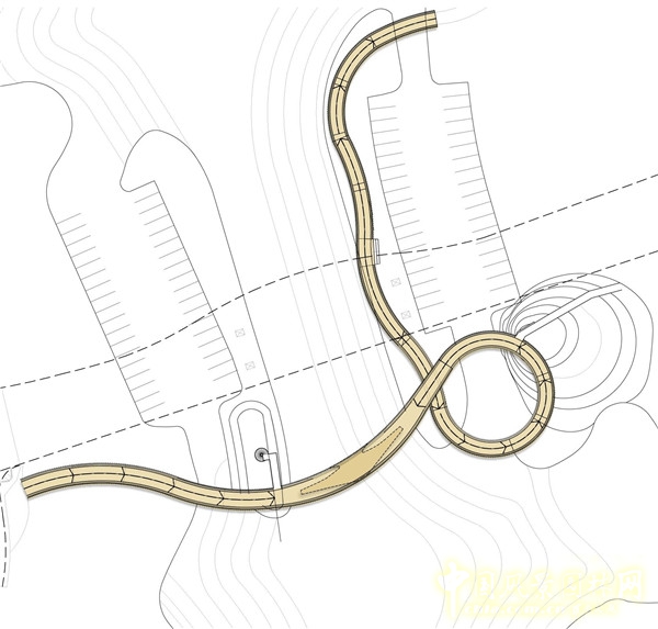 橋梁設計靈感源自中國傳統的木拱廊橋特點,通過對木材的深層次理解與行人流線的結合,進一步豐富了蛇骨橋的內涵。木質材料的整體包裹,則如同巨蛇的骨骼,在貼合生態概念與促進可持續發展的同時,更帶給它獨特的藝術感覺。