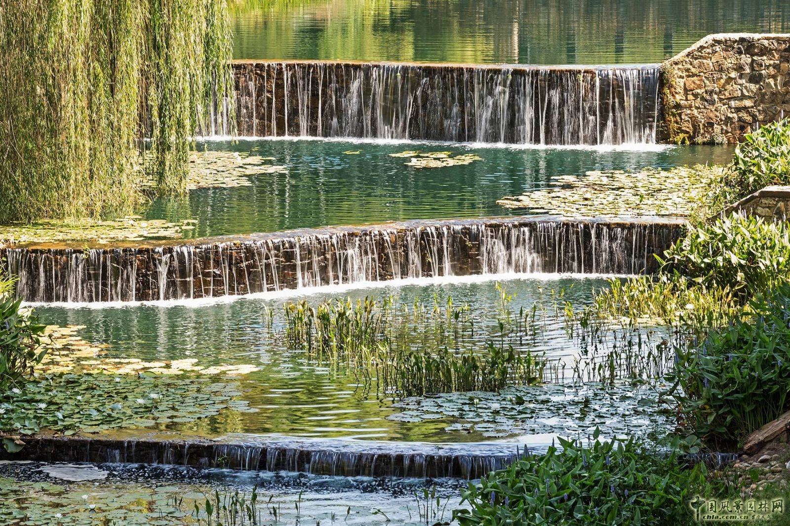 設計師在湖泊上建造了一個小壩,形成瀑布和濕地區域,湖中有很多魚,濕地中種植了許多植物,這些都有助于通過自然過濾改善水質問題。