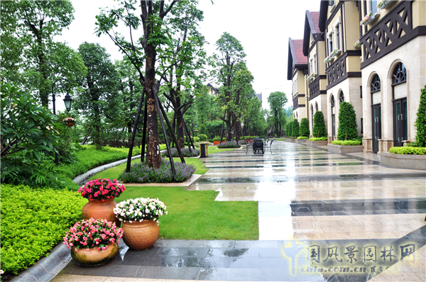 "山脈傲然,藏鋒得水;尋夢于夢里水鄉,俯拾英倫尊貴臻品"。根據建筑的英倫主義,景觀上采用英式莊園風格統籌全局,展現英倫莊園自然、生態、浪漫、寧靜的特點。同時結合里水地域文特性,設計生態水系貫穿整個別墅區,側重水域私有化及居民親水性,打造自然生態的溪流風光,致力于將紫山國際打造成廣佛地區最具山水資源、英倫風情的溫情國際社區。