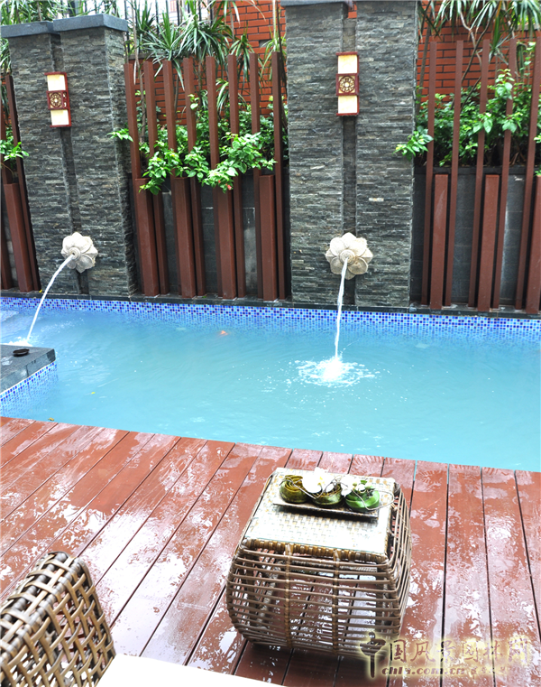 ?。?)無處不在的英倫貴族景觀元素。提取建筑中具有英倫風(fēng)情的元素,運(yùn)用在泳池、廊架、水景、鋪裝圖案、景墻鐵藝、景觀燈罩乃至線腳等各個(gè)部分。以別致的鐵藝亭、優(yōu)雅的花架、精致的水景等英倫風(fēng)格濃郁的硬質(zhì)景觀,體現(xiàn)歐式會(huì)所庭院高貴典雅的氣質(zhì)。泳池采用幾何形狀的外觀,卻又不拘泥與完全對稱的構(gòu)圖,既體現(xiàn)英倫貴族的氣息,又能透露出其浪漫的本性。