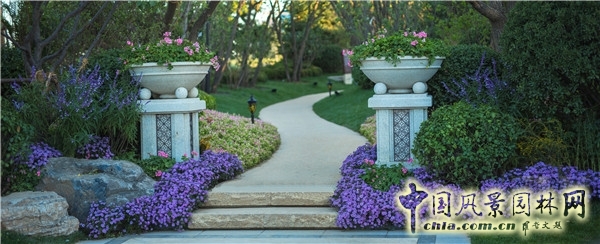 “時(shí)光隧道”的靈感來(lái)源于烏克蘭Klevan的火車道,被人們稱為“通往浪漫的愛的隧道”。無(wú)數(shù)年輕戀人漫步在此,許下一生一世的美麗心愿。園路采用米黃色水洗石鋪設(shè),進(jìn)一步增加園區(qū)自然氣息,給人以回歸田園、親切自然之感。