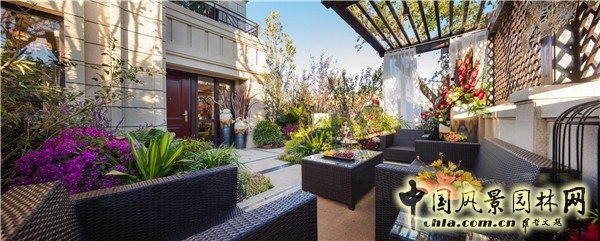 為打造精致化庭園,設計師將室內空間延伸至室外,以場景化方式反應真實生活狀態,力求營造私人化場地感受及未來生活體驗。