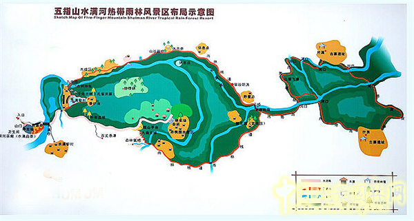 五指山水滿河熱帶雨林風景區布局示意圖