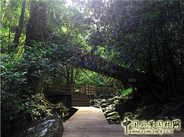 棧道施工在不破壞自然景觀的情況下,盡量突出親水性,將棧道引到溝谷周邊的亮點及最精彩的部位,讓旅客盡情的親近的享受大自然的博大精深,讓游客一覽無遺。另外,棧道還將整個溝谷的景點如母生平臺、空中花籃、杪欏群、仙女潭、猴頭石、雨林密碼樹、昌化江瀑布等有機的連接起來,不僅有故事情節又充滿著熱帶雨林的神秘,令人留連忘返。
