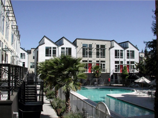 這個多收入階層混合住宅區是由Bridge Housing(非營利性的房地產開發公司)和Holiday Development(私人住宅開發者)合作建設的。在這塊4英畝的土地上有一個名為柯金斯廣場的87個單元的保障房,以及一個名為鐵馬公寓的54個單元的商品房。它位于以公共交通為導向,高密度開發為首要類型的康特拉科斯塔縣,毗鄰核桃溪市巴特車站。