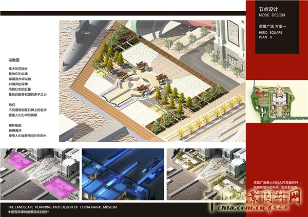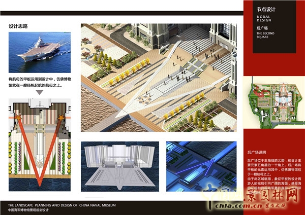 在細部小區域的設計上多元化的體現一系列與海軍有關的元素,例如索星卡、摩斯密碼、桅桿、利劍等,將這些元素融入景觀設計中,從而對參觀者產生潛移默化的教育影響。