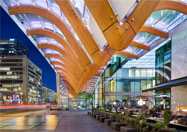 TELUS Garden的建造徹底將溫哥華下城的一個(gè)老舊街道變成了一個(gè)擁有無(wú)限發(fā)展?jié)撃芏喙δ軓?fù)合的美麗宜居的街區(qū)。這個(gè)集商業(yè)辦公和住宅為一體的街區(qū)因其先進(jìn)的科技和宜居的環(huán)境被人們所熟知。