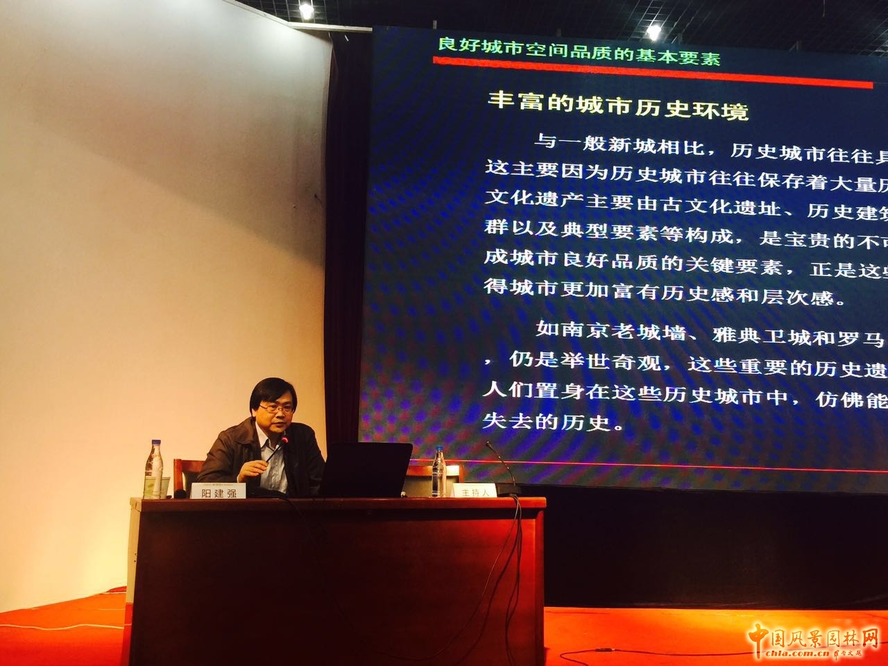 中國風(fēng)景園林網(wǎng)訊 4月24日下午,亞洲園林大會暨第六屆園冶高峰論壇---新型城鎮(zhèn)化與宜居城市論壇在南京林業(yè)大學(xué)教五樓成功舉辦。東南大學(xué)建筑學(xué)院城市規(guī)劃系主任陽建強教授以《城市空間品質(zhì)的營造與提升》為主題,從建筑空間的角度來剖解城市設(shè)計中的難題,以具體案例講解城市中的歷史與現(xiàn)代融合。