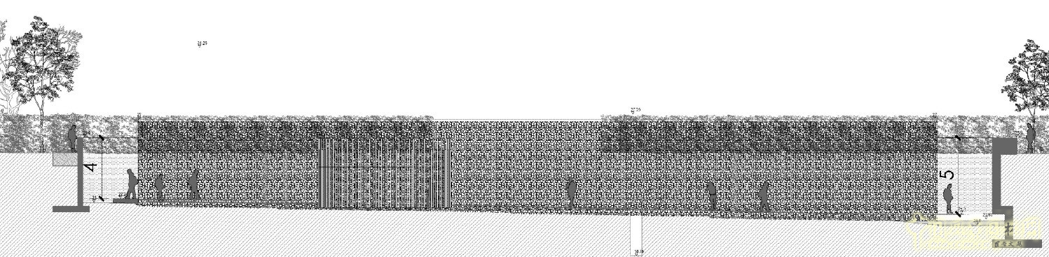 “深入園”原設(shè)計的園底與外部地面的高差為5米,受地基的影響最大,所以不得不中途征求設(shè)計師意見,將高差改為2.5米。當(dāng)然,設(shè)計效果不可避免地受到些許影響。