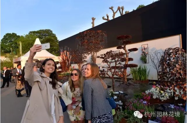 每年的花展有三天公眾開放日,我們已有觀展經(jīng)驗(yàn),這次選擇了傍晚入場,但仍見游人如織、熙熙攘攘,英國人對花卉園藝的高度熱情令人感慨,從皇室成員到平民無一例外,現(xiàn)場還碰到BBC電臺采訪,濃濃的愛花愛園藝的風(fēng)氣。