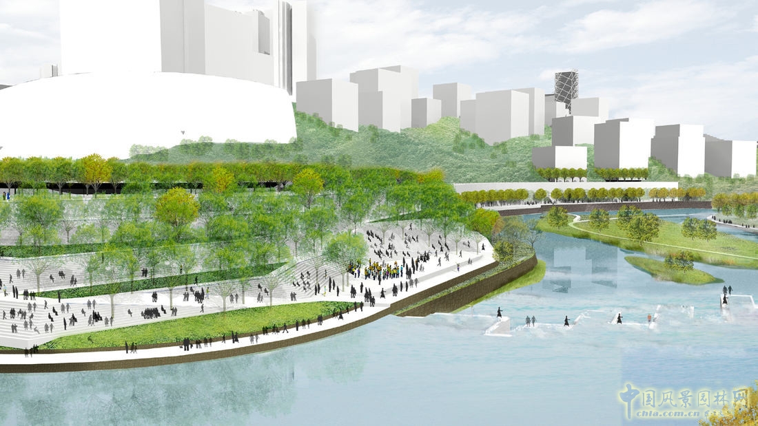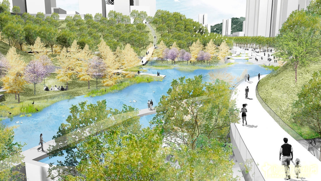 道路系統(tǒng)主要包括人行路、自行車騎行路、機動車道路和沿著十英里河流的船只航線,這四者共同形成了一個完整的交通系統(tǒng)。