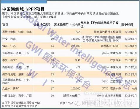 光大水務以及清華同方在4月和5月分別宣布進軍海綿城市PPP市場,北排集團是國內首個獲得PPP項目的企業。(見上表)