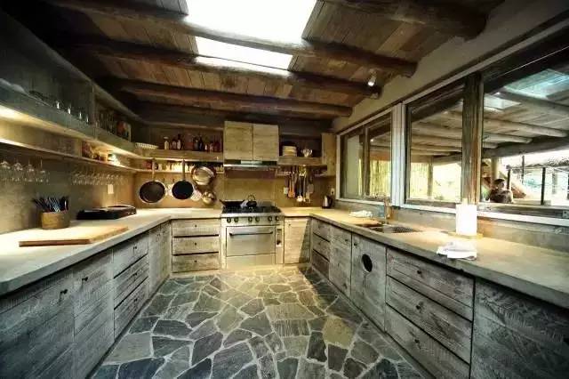 開放的大廚房有些夸張,為了瞞足眾多客人可以同時參與料理,共享度假歡樂的時光。頂面天窗采光的設計讓室內更具室外感。